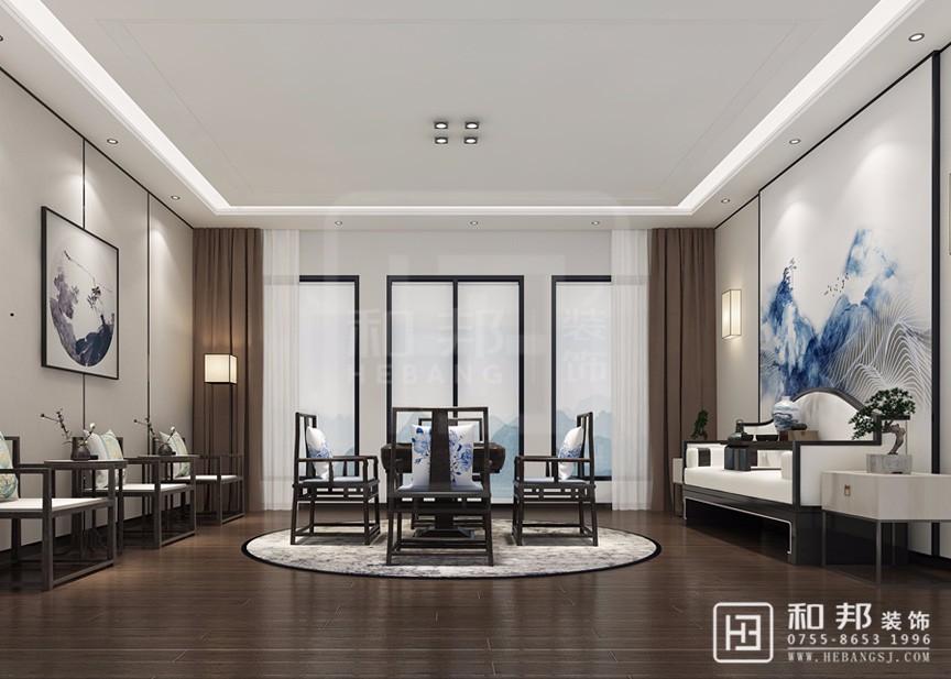 本案在空間配色上很輕松自然,既有現代設計的簡約,又契合東方傳統的古典氣韻。